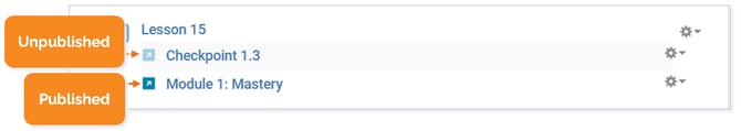 TIP: Another way to know you if an item is published or unpublished is by locating the icon to the left of the activity.