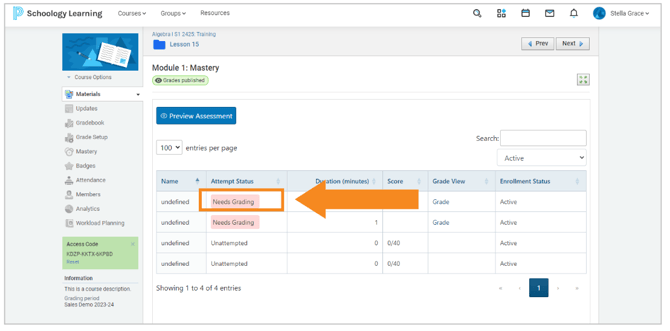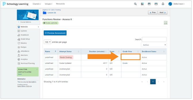 If the Assess It contains manual grading (i.e. essay or upload), you will see the Needs Grading prompt again.