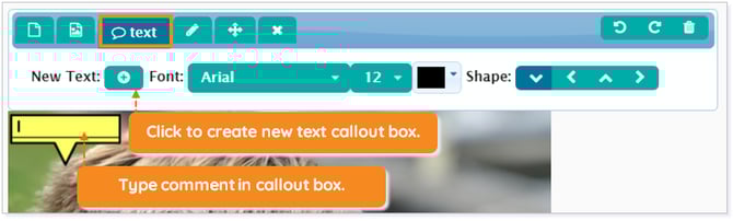 NOTE: Changes to the Font, Font size, Font color, and placement of the arrow on the text callout box must be done prior to selecting New Text.