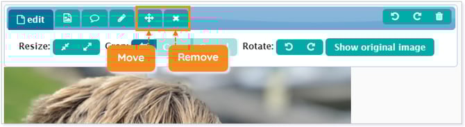 - Select the Edit tab and then the Drag resize button, and drag the border of the image to change the size.