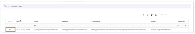 Click the icon in the Actions column next to the auto-generated email you wish to view.