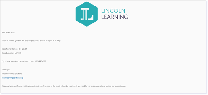 IMPORTANT: Two common auto-generated email notifications are the Account Creation Notification (i.e., notification sent when a user account is created containing login information, the link to the URL, username information, and a temporary password when applicable) and the Enrollment Notification (i.e., details about a user enrollment).