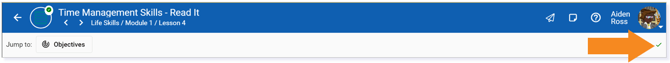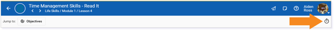 For some courses, the completion of an activity is based on a set time. If this is the case, you will see a timer icon in the upper right-hand corner.