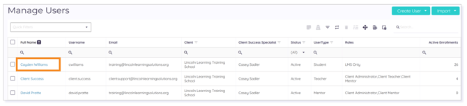 - Uses with the Client Administrator role can create and manage students, mentors, and enrollments in Pulse.