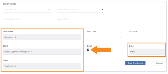 Assign a Start Date and End Date. Finally, click Save Enrollment.