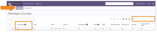 In Courses, search or filter for the class in which you wish to enroll the student.