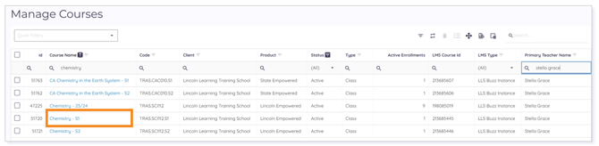 NOTE: This process can also be completed by navigating to Enrollments, then searching for the class in the data grid.