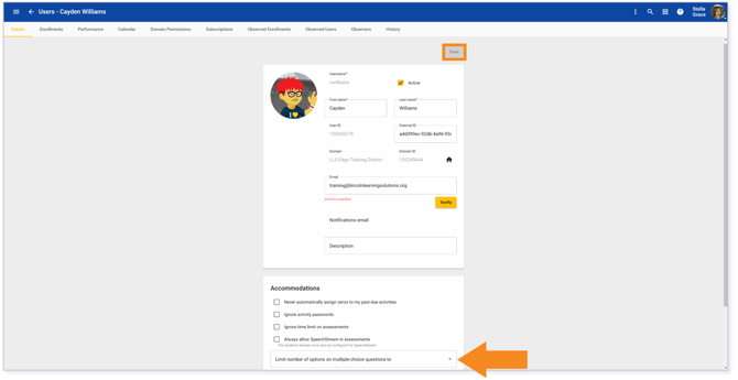 Upon request, the permissions to adjust the Accommodations details associated to a User role will be applied. This allows the user to apply the desired number of Multiple Choice options to the user.
