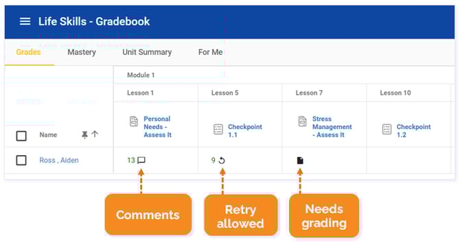 TIP: Featuring the Unit Summary tab, the below video highlights ideas for viewing additional details on what a student has or possibly has not done within a course.