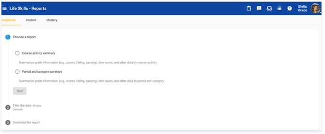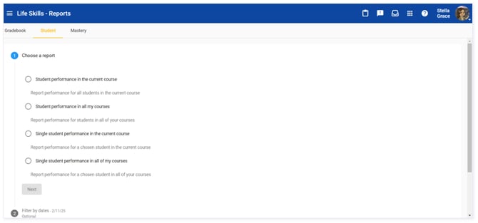 As a teacher, you can run customized class and student reports for gradebook, performance, and mastery-level analytics.
