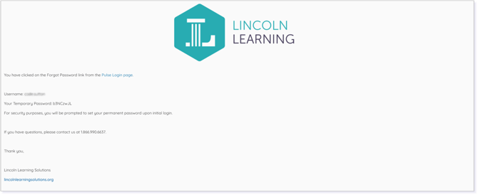 The system sends an email with a temporary password to your email on file. Check your email for this notification.