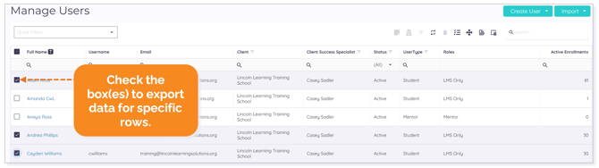 TIP: Use the checkbox(es) to select specific rows for exporting.