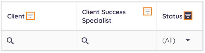 Clicking on the magnifying glass in any Search field within a column populates a drop-down menu of options that help you to further filter your column.
