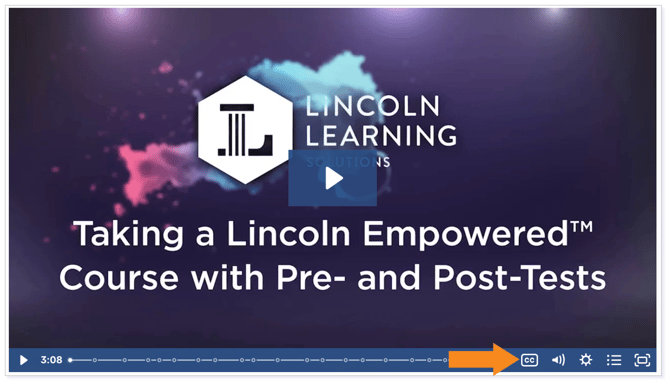 Closed captioning is availabe on Lincoln Learning videos with narration in videos in both the course content and the Help Center. However, applying closed captioning is a different process for a curriculum video found in your course as compared to a Help Center video.
