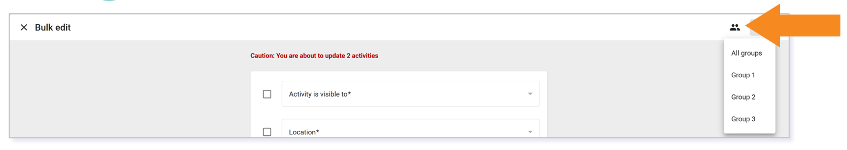 IMPORTANT: You can use Bulk Edit to customize the experience for Group within the course. To do that, make sure you first select your group from the upper-right corner.