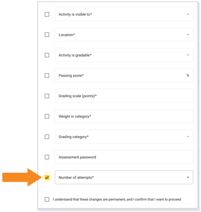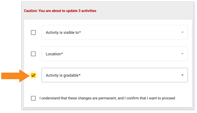 You can reselect the Custom Activities to explore additional bulk changes to apply to your newly gradable items