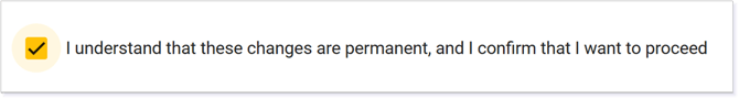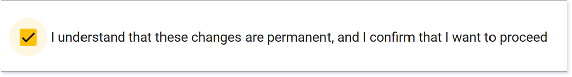 Click the check box next to the I understand that these changes are permanent, and I confirm that I want to proceed statement.