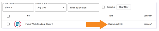 Notice that the Type for the learning object changed from File or Website to Custom Activity.