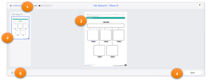 - Total pages – Shows the number of pages included in the interactive worksheet. Click on the page to view it.