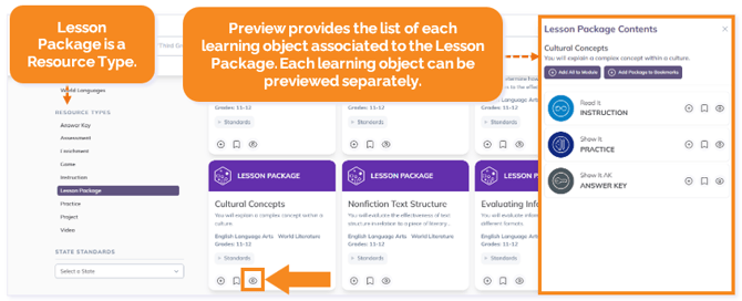 Lesson Packages are sequenced collections of learning objects that help students master a learning objective.