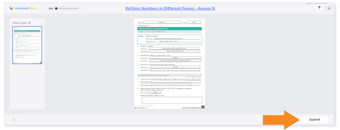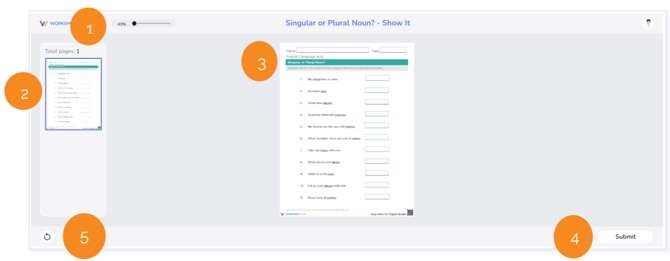 - Total pages – Shows the number of pages included in the interactive worksheet. Click on the page to view it.